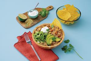 To customize your culinary creation, simply adjust the heat to your liking with a sprinkle of ancho chili powder or add a touch of creaminess with a generous helping of guacamole, dollop of sour cream or sprinkle of shredded cheese. To further transform your meal into a festive feast, pair your bowl with grilled chicken, tofu or a fresh green salad.